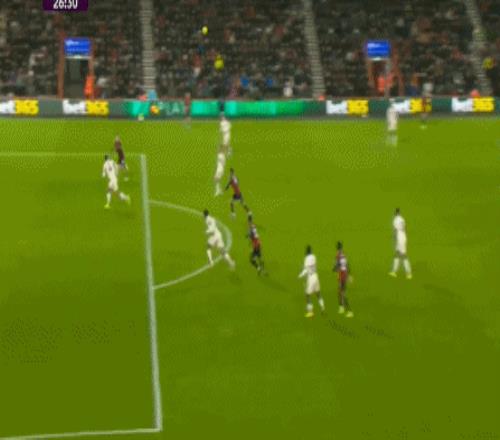 第26分钟,塞内西长传,队长范戴克解围踢空送礼,伯恩茅斯的埃万尼尔松打破僵局,主队先声夺人,利物浦0-1落后。
