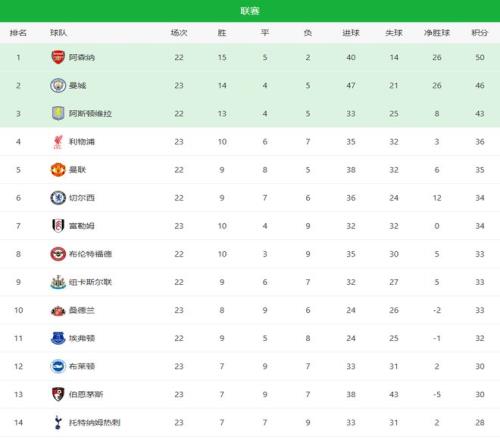 随着曼城20+利物浦23爆冷!英超最新积分榜:曼联死磕阿森纳